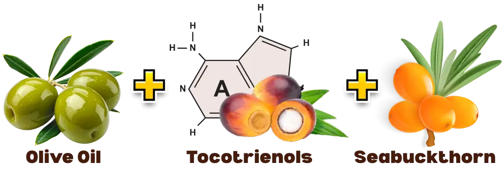 Diperkaya Olive Oil, Tocotrienols & Seabuckthorn untuk sokongan metabolik & Jantung.