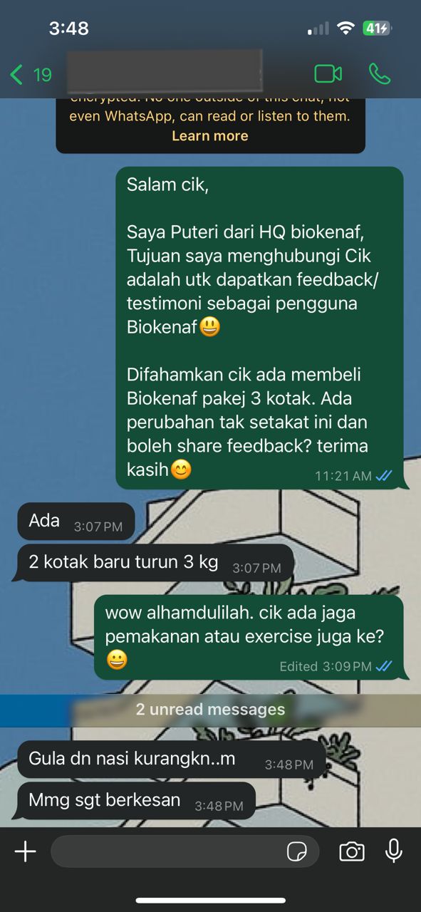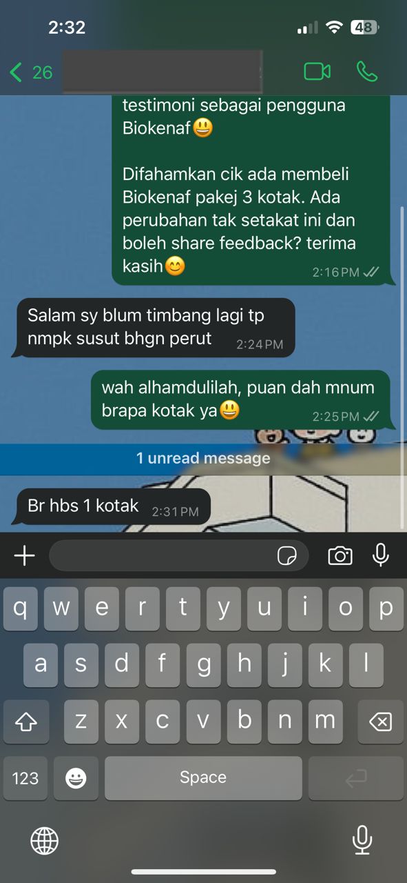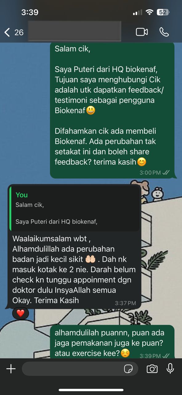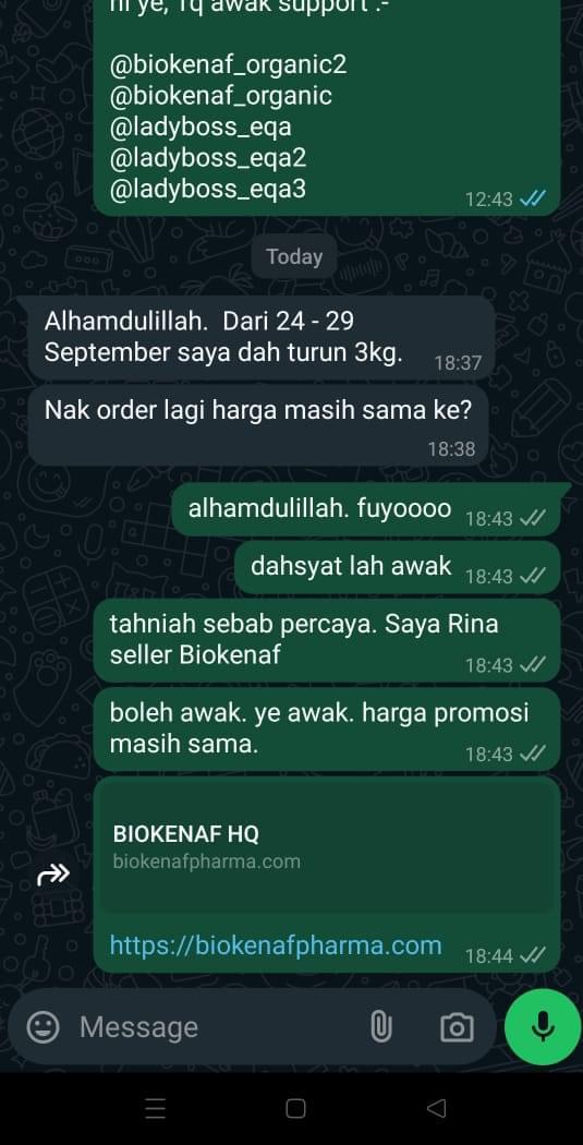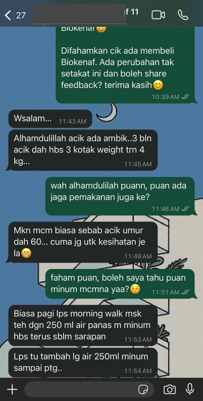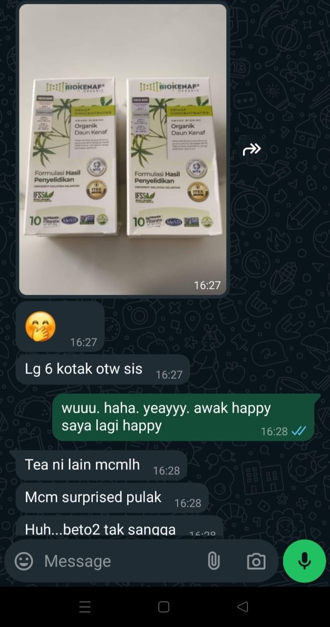 Kesan Dialami Pengguna Biokenaf Seawal 28 Hari Melalui Temubual Whatsapp