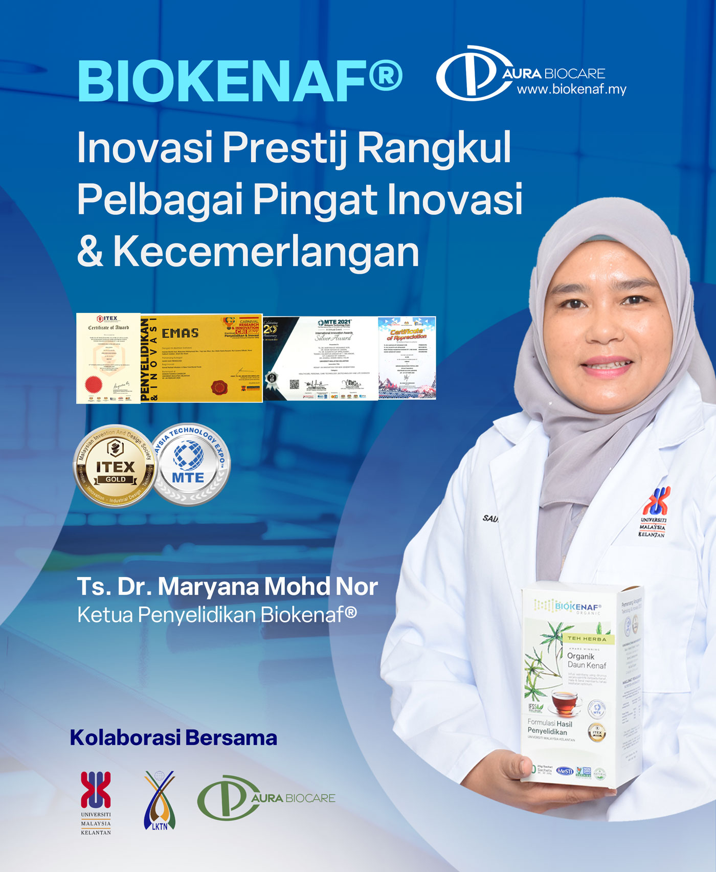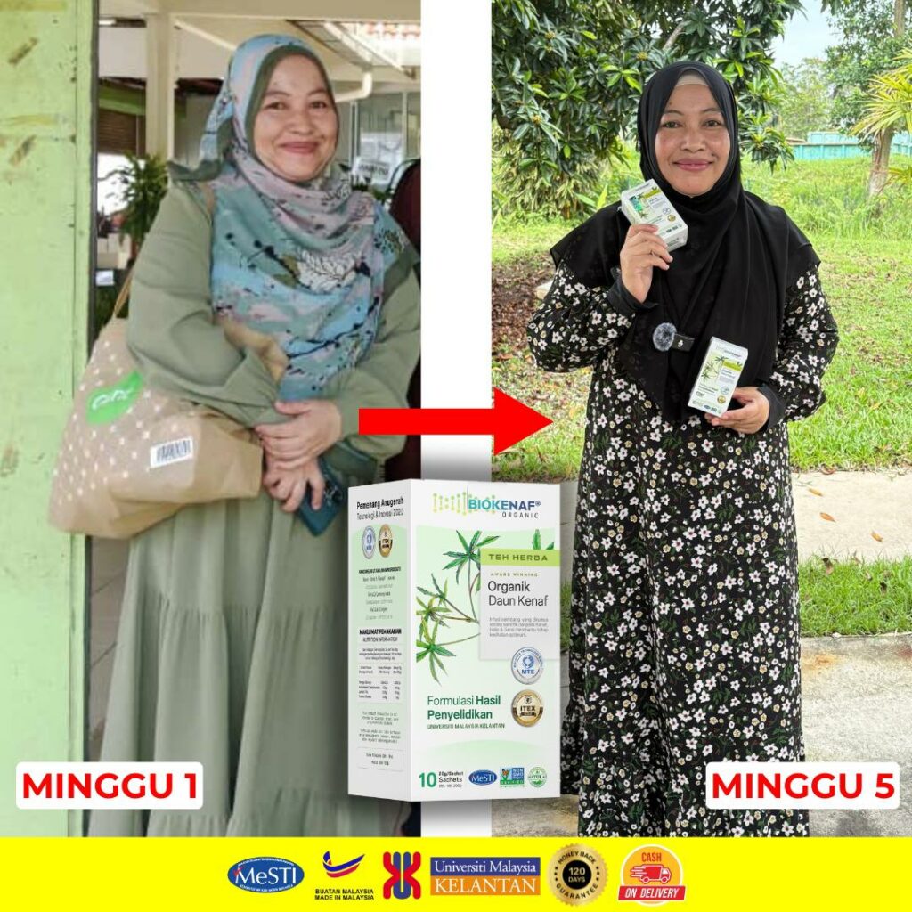 “Sebagai seorang saintis, saya perlu buktikan keberkesanan produk ini, bukan sahaja melalui kajian terperinci, dengan amalkan Biokenaf® saya dapat buktikan penurunan berat & penghapusan kolesterol jahat secara natural.” – Ts. Dr. Maryana Mohd Nor