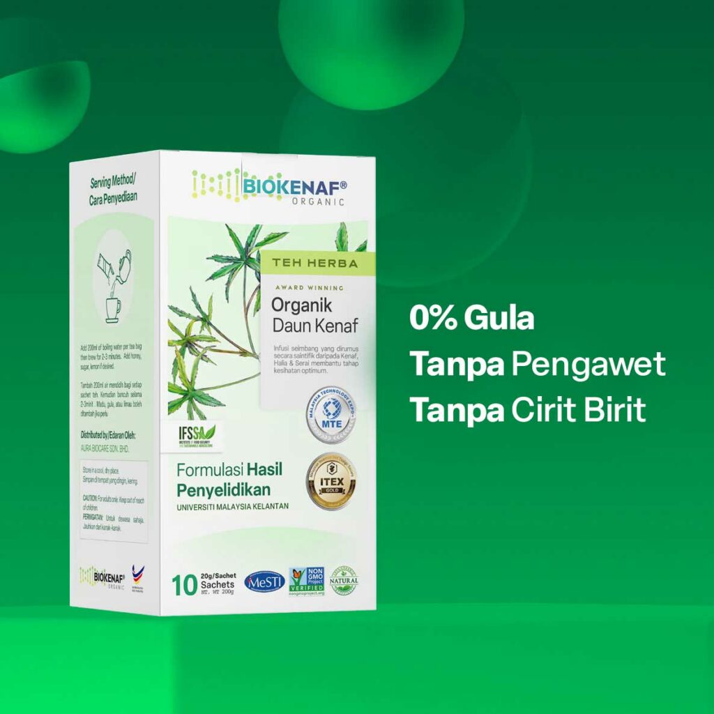Biokenaf® diformulasi dari bahan semuljadi, 100% Organik tanpa bahan pengawet & telah menjalani ujian makmal ke atas sel hati memastikan keselamatan produk.