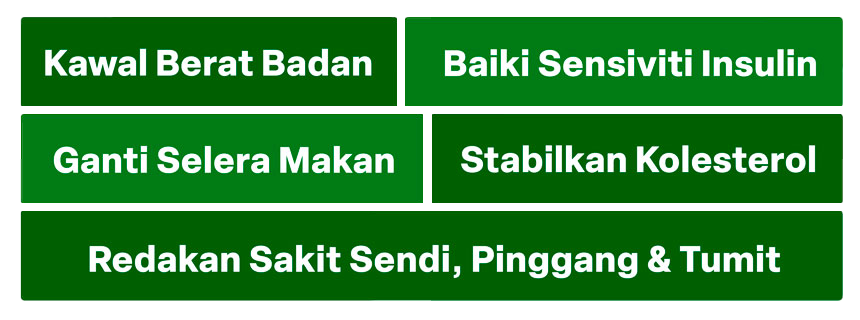 Kesannya Proses Turun Berat 24x Lebih Cepat & Selamat dengan menghalang punca secara kekal & memaksa proses pembakaran lemak berterusan tanpa perlu cirit birit.