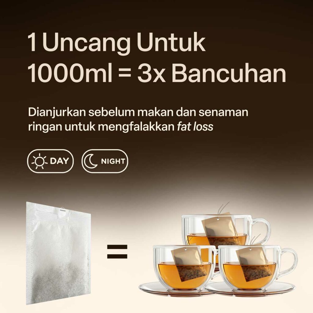 1 Uncang Untuk 2-3x Bancuhan Tahan Selama 1-2 Hari. 1 Kotak Untuk 10-15 Hari
